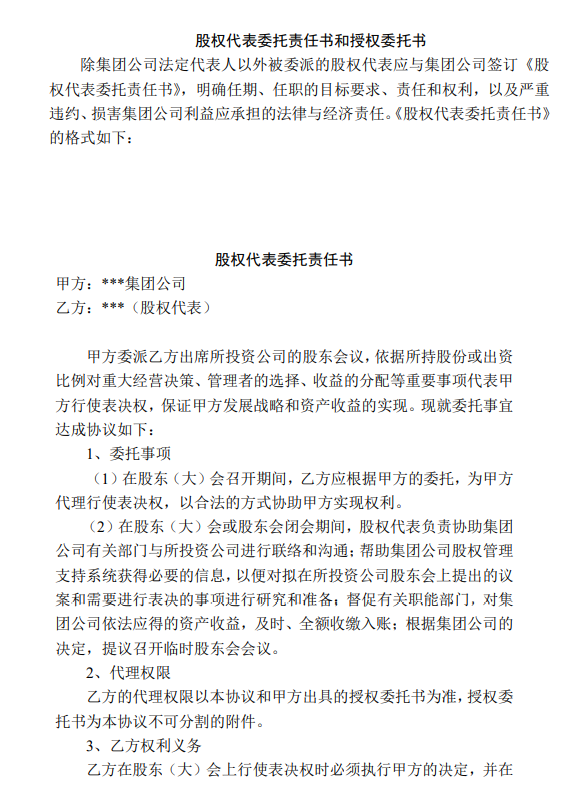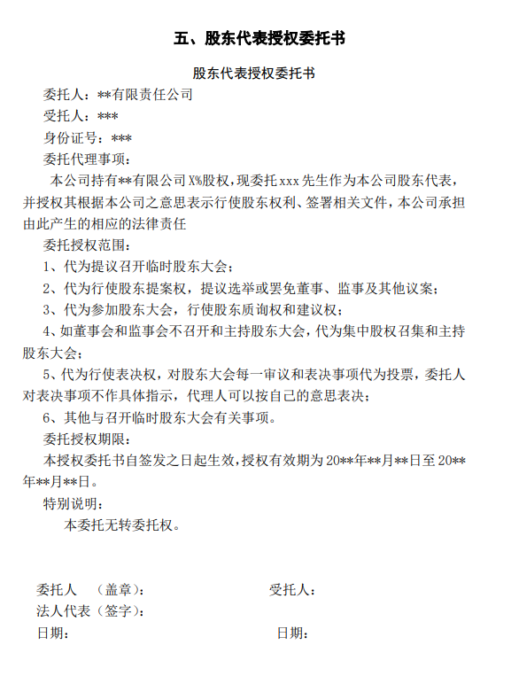 公司治理之“三會模板”系列——股東代表授權(quán)委托書模板