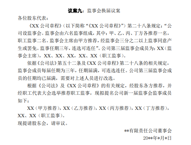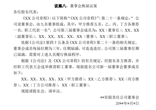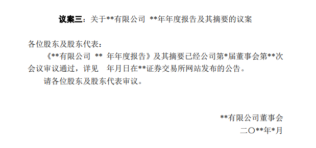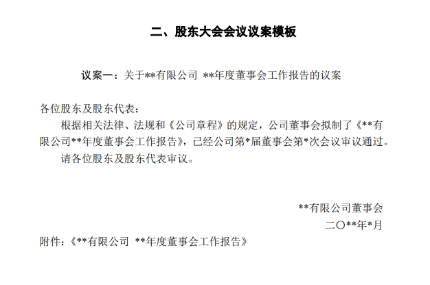 二、股東大會(huì)會(huì)議議案模板
